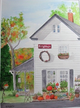 I saw this building just as it is painted from across Route 52 and everything about it drew me. I loved the sign, the weath hanging below it, and the flower box on the upstairs window. I was also attracted to all the flowers and pumpkins and cool things that were stacked up and arranged in front of the house.