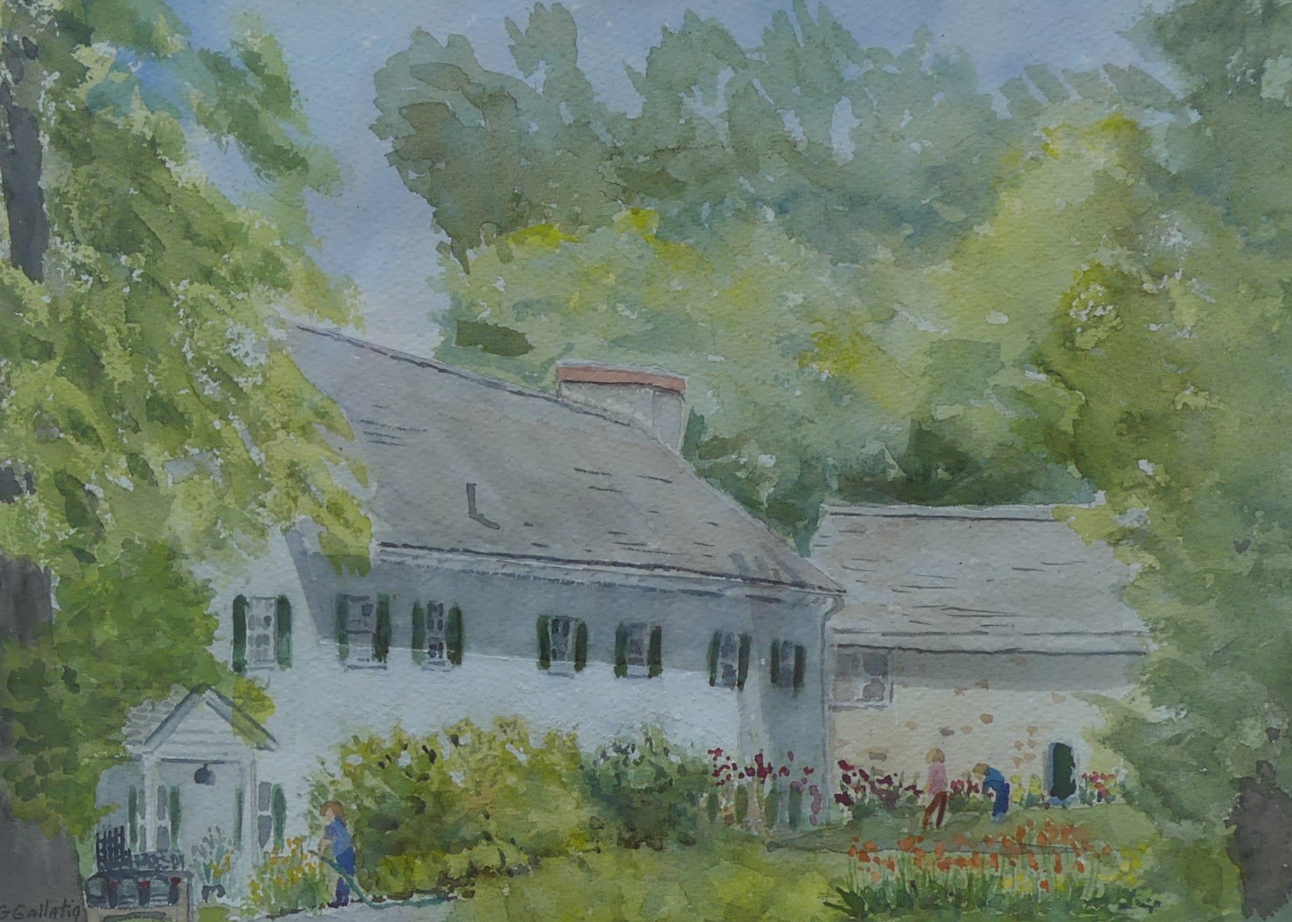 I sat in the sun under my umbrella next to the Stone Wall by the entrance to the parking lot and sketched and blocked in the painting on site. I took a few pictures and used them for reference to complete the painting in my studio.