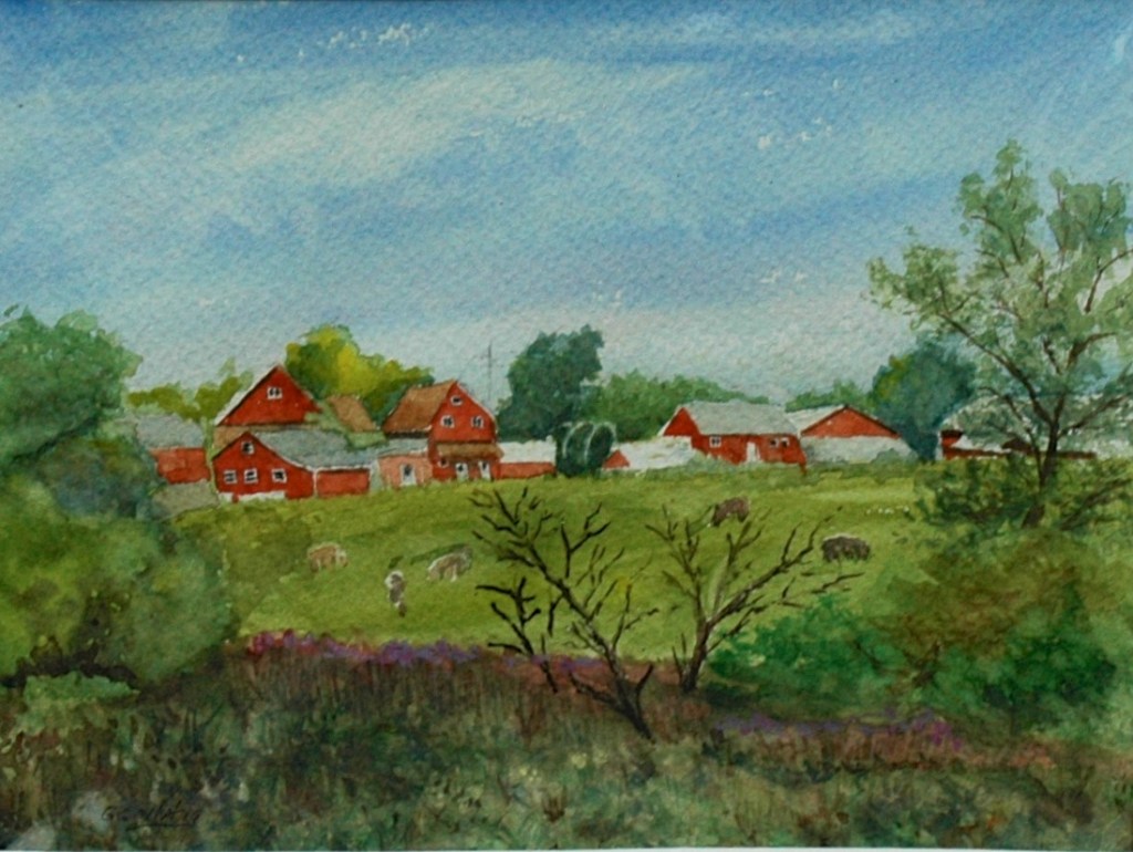 We set up by the bridge. I’ve painted cows there before but never the farm so I decided to give it a go. I really liked the composition. I have been working on techniques for capturing meadows particularly in the foreground and this scene provided a significant challenge. Most of the painting was finished on site. I did a few touch ups back in the studio on the buildings and foreground.