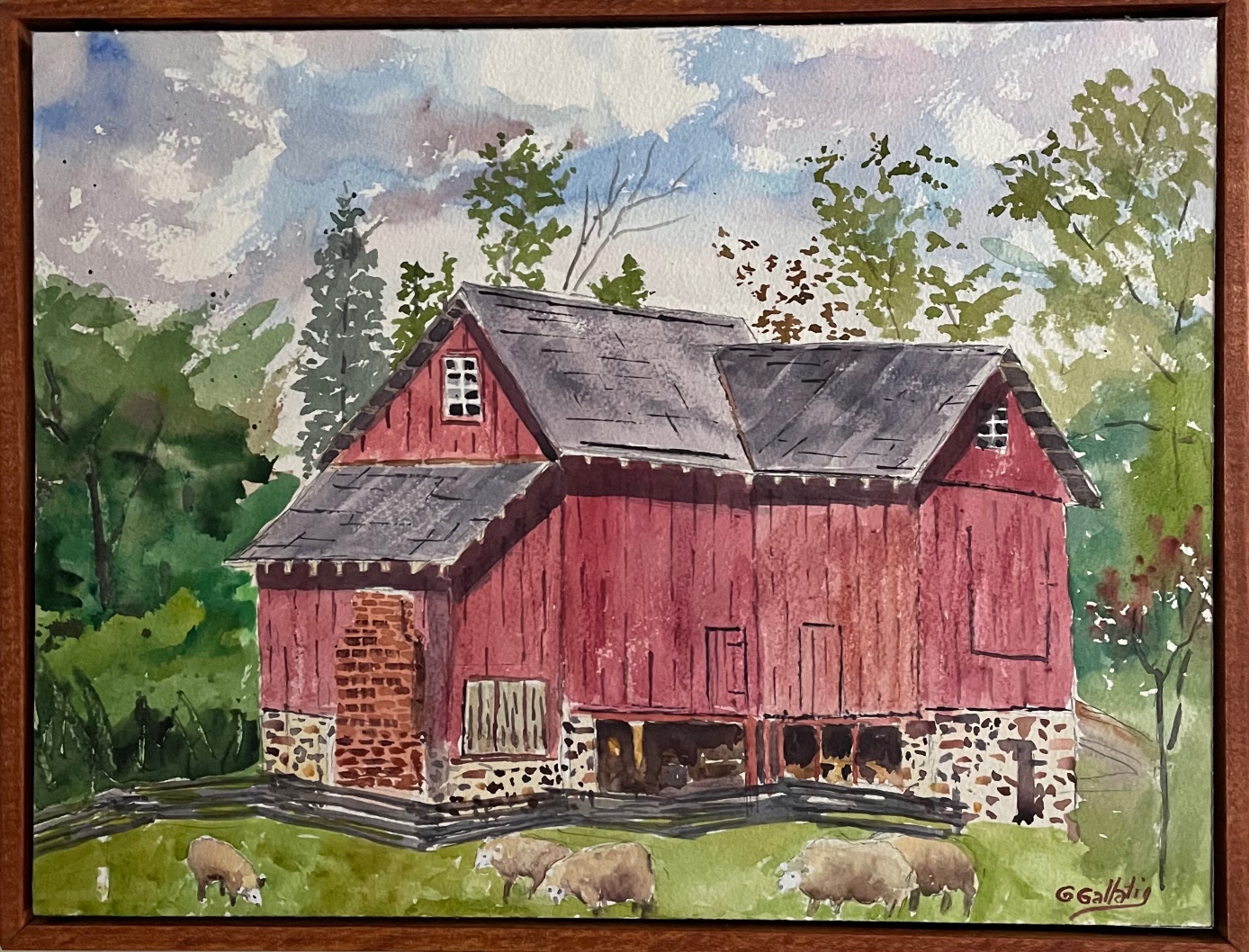 Barn At Greenbank Mills was painted en plein air in June of 2021. This is a 12 in by 16 in watercolor painting that has been sealed with UV Resistant Varnish and mounted in a floating frame. The painting is currently on exhibit at Greenbank Mills in Delaware.