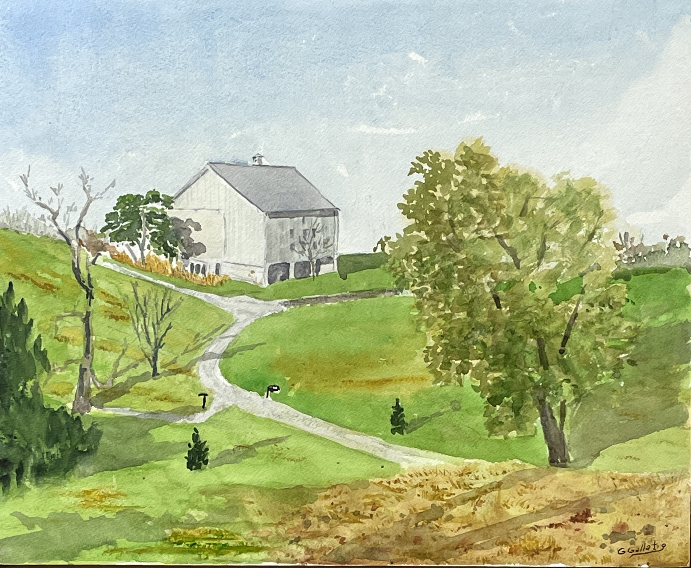 “Barns At Winterthur” was painted en plein air at Winterthur in November of 2022 during one of their wine tasting events. It was a bright but really cold day, I had great fun painting and talking with the guests who had lots of questions that day.