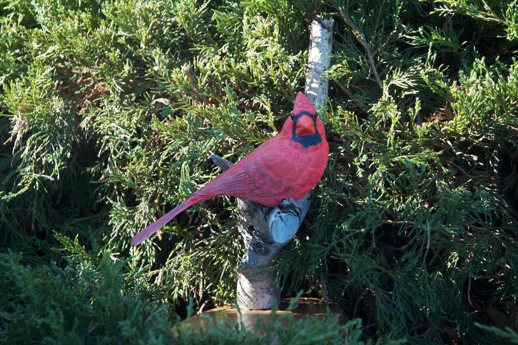The Bluebird Fledglings are approximately 20 days old. I work on the Bluebird Team at Longwood Gardens and see lots of these. The male Cardinal is propped up in bush in front of my house. I used this photo for a Christmas card one year.